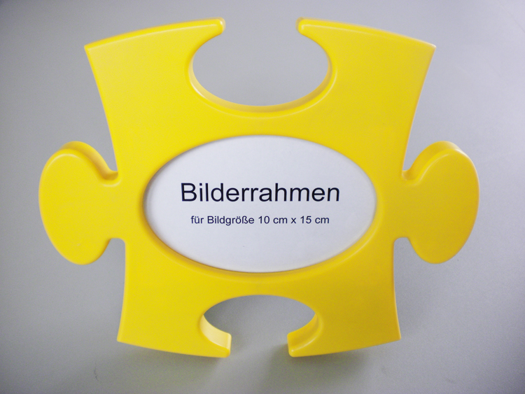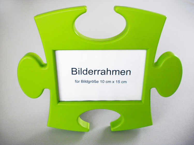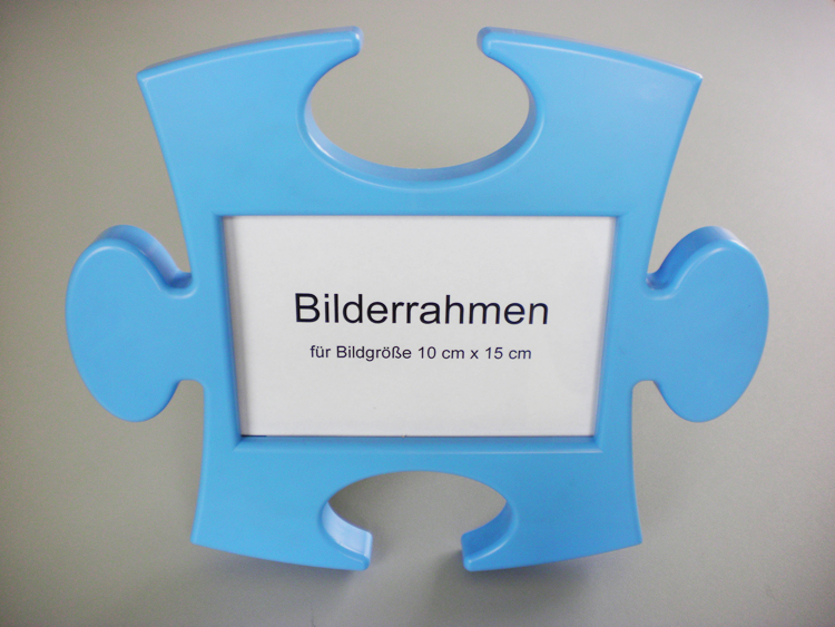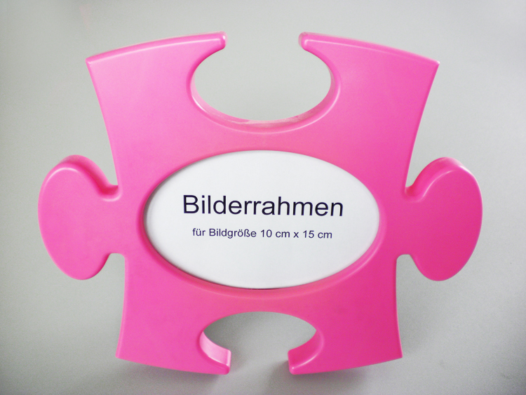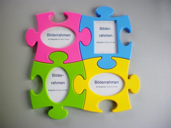 Dieser formschöne Bilderrahmen ist in Form eines Puzzles gestaltet. Er ist passend für eine Bildgröße 10 x 15 cm.